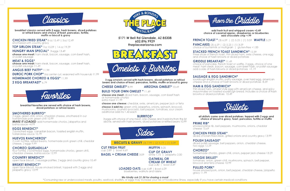 Welcome to The Place Glendale, a beloved dining spot located at 5171 W Bell Rd, Glendale, AZ. Renowned for its vibrant atmosphere and enthusiastic service, this establishment is a haven for breakfast lovers and comfort food enthusiasts alike.